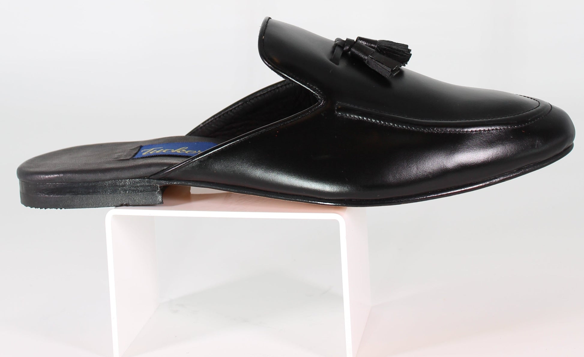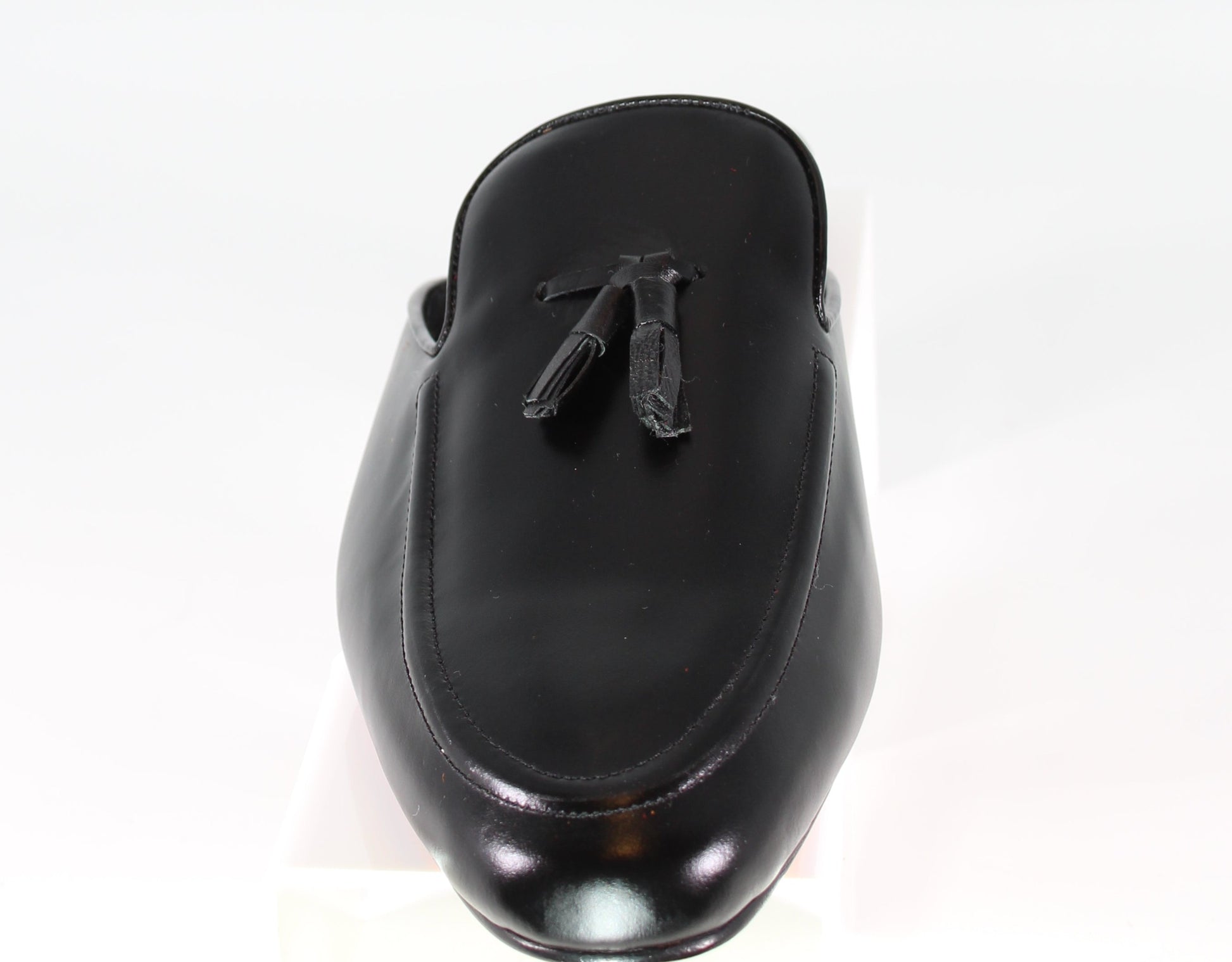 Tassel loafers mules in black leather. 100% leather upper lining and sole.