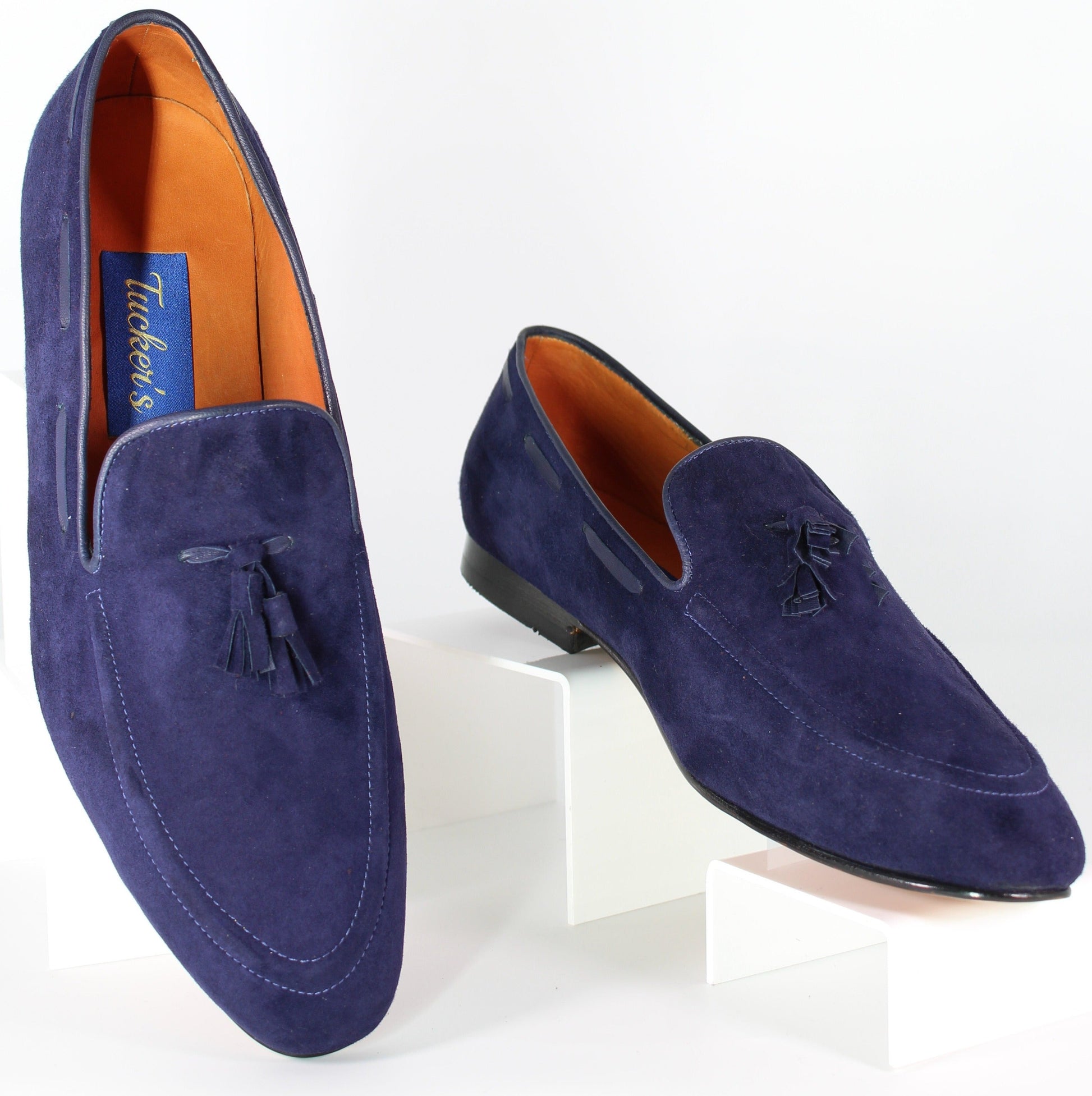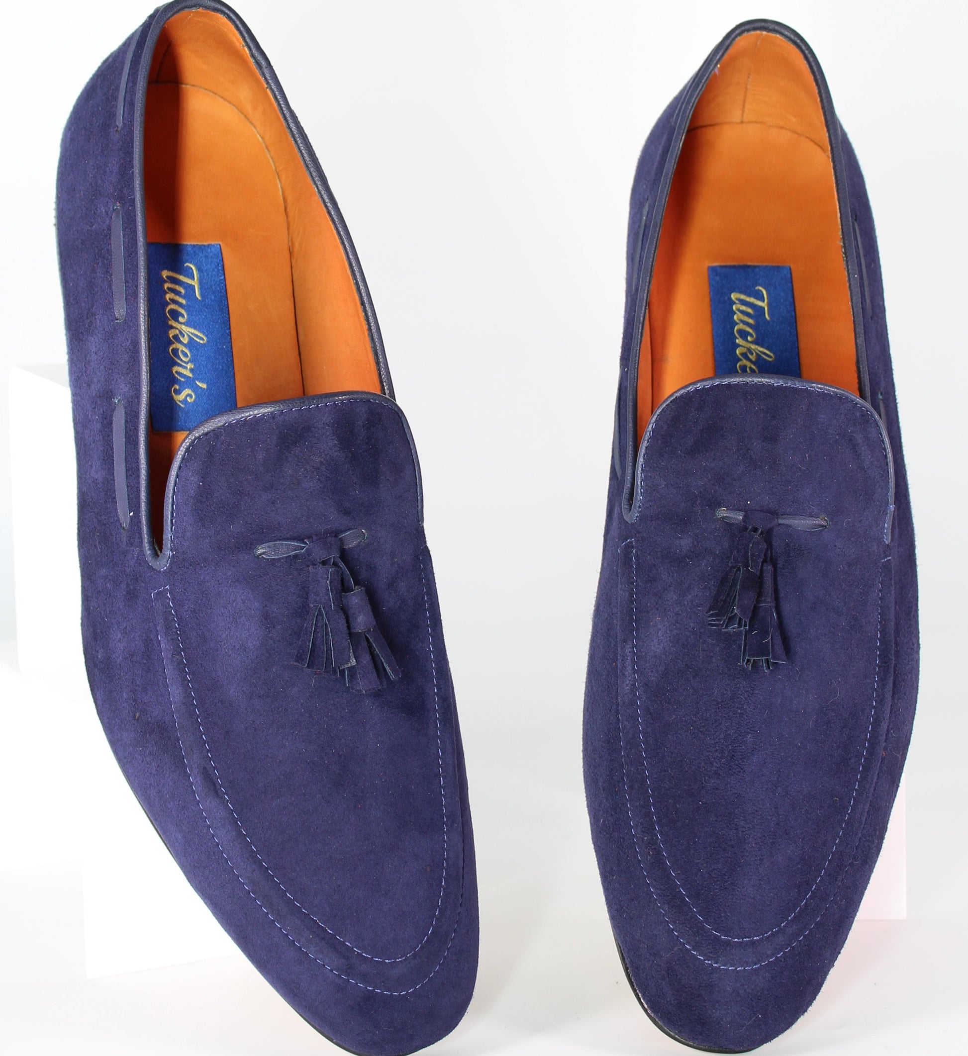 Turquoise blue suede leather loafer with 100% handmade brushes. Internal lining in black leather and non-slip leather sole.
