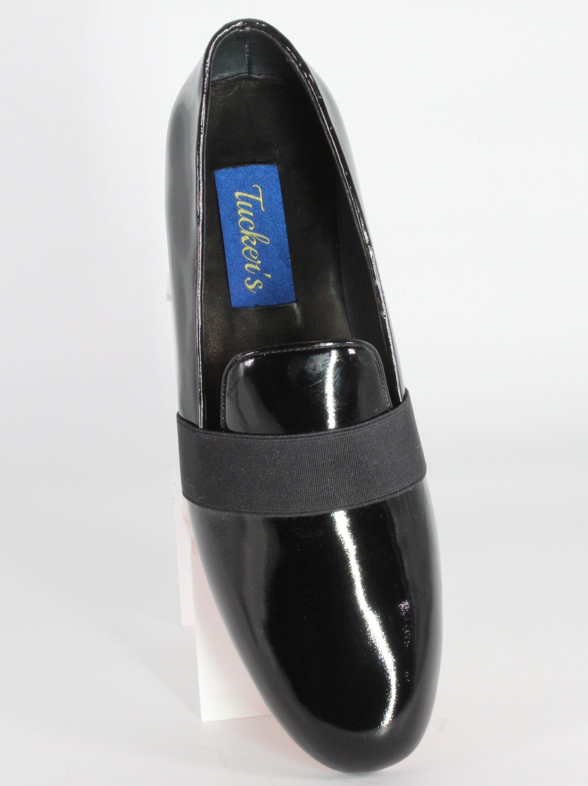 High quality patent leather Tuxedo slippers with a soft lining to provide a more comfortable feel throughout the day. Designed with a higher vamp and back heel trimming. These slippers come with an elastic strap for a better fit and stability of the foot.
