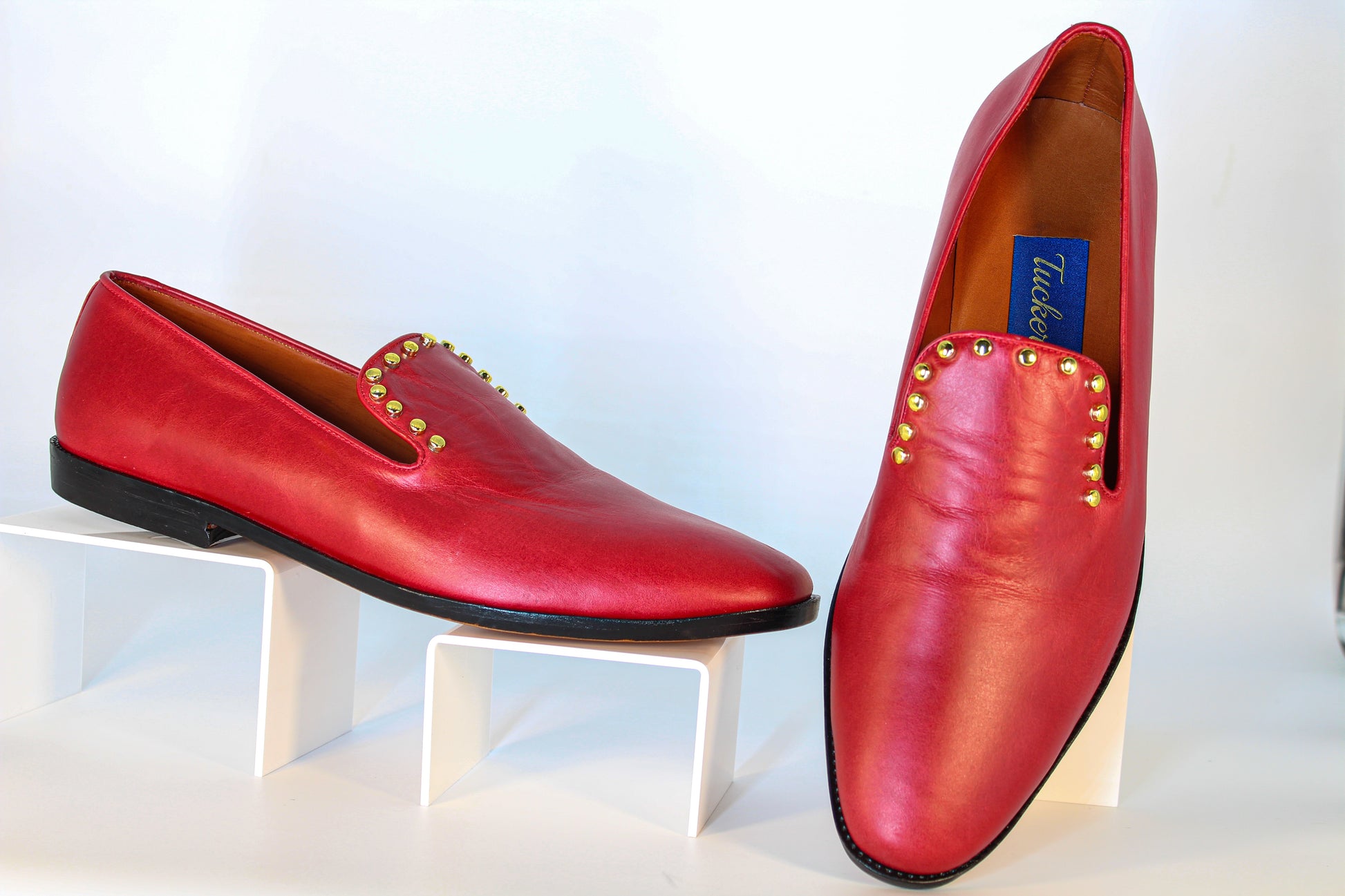 Add a pop of color to your professional wardrobe with this Red Leather Loafer, featuring gold accents. Crafted in Colombia South America, this shoe is the perfect addition to any wardrobe!